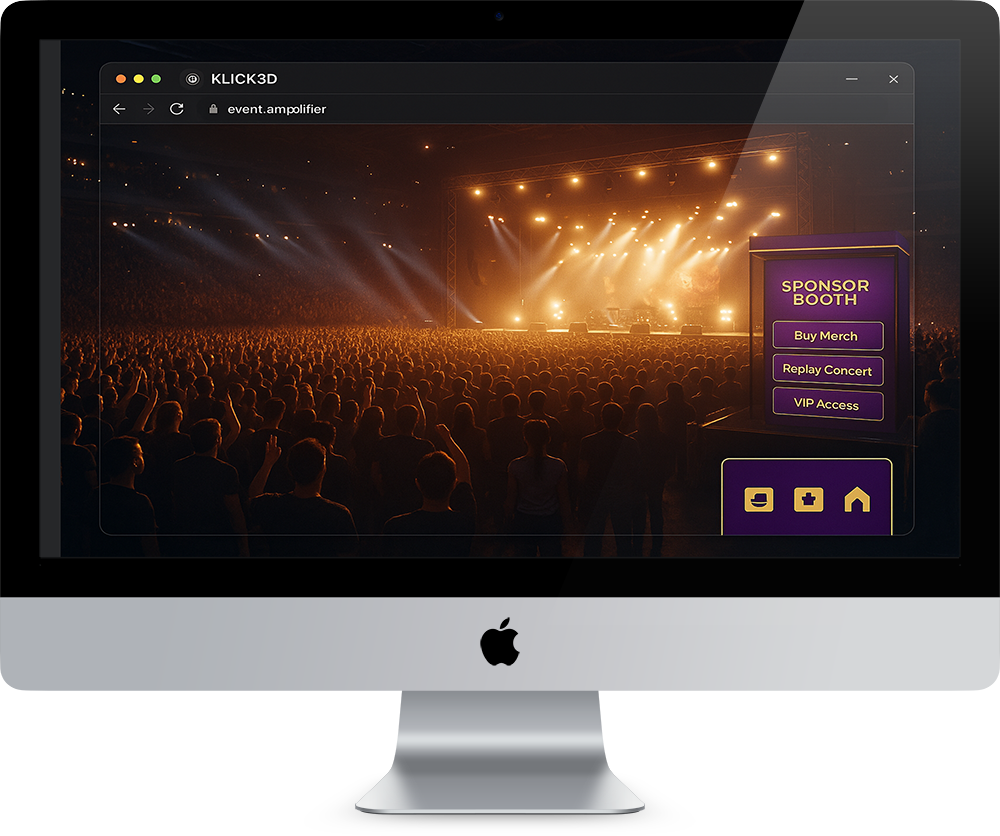 A hybrid event platform that extends real-world concerts, conferences, and sporting events into immersive 3D spaces. Audiences can attend virtually with access to sponsor booths, replay features, and VIP upgrades. Perfect for organisers who want to expand reach, monetise beyond physical limits, and create ongoing post-event engagement.