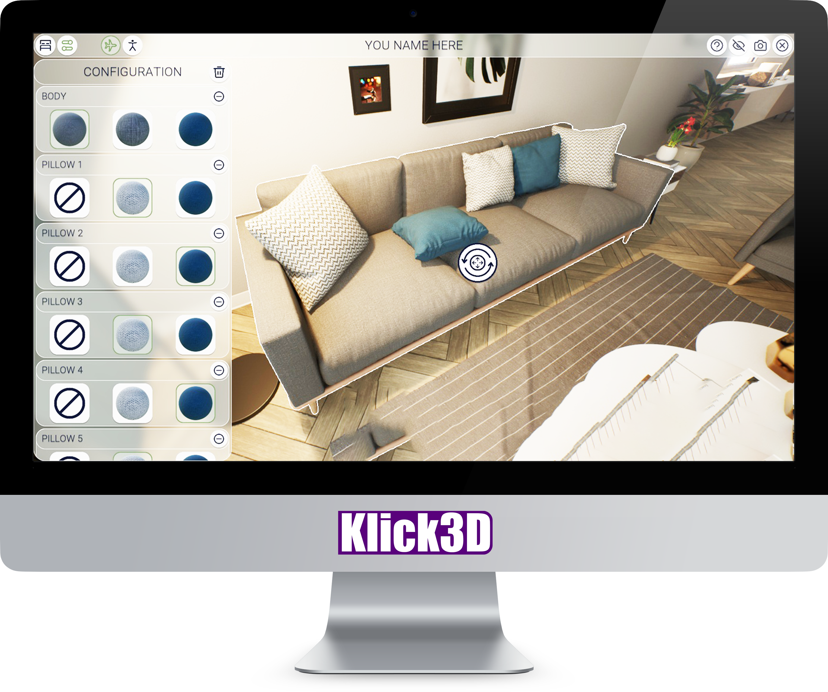 Klick3D Design Selector solves this with an interactive 3D tool that lets users instantly preview furniture styles, room layouts, materials, or façades — all in the actual space.